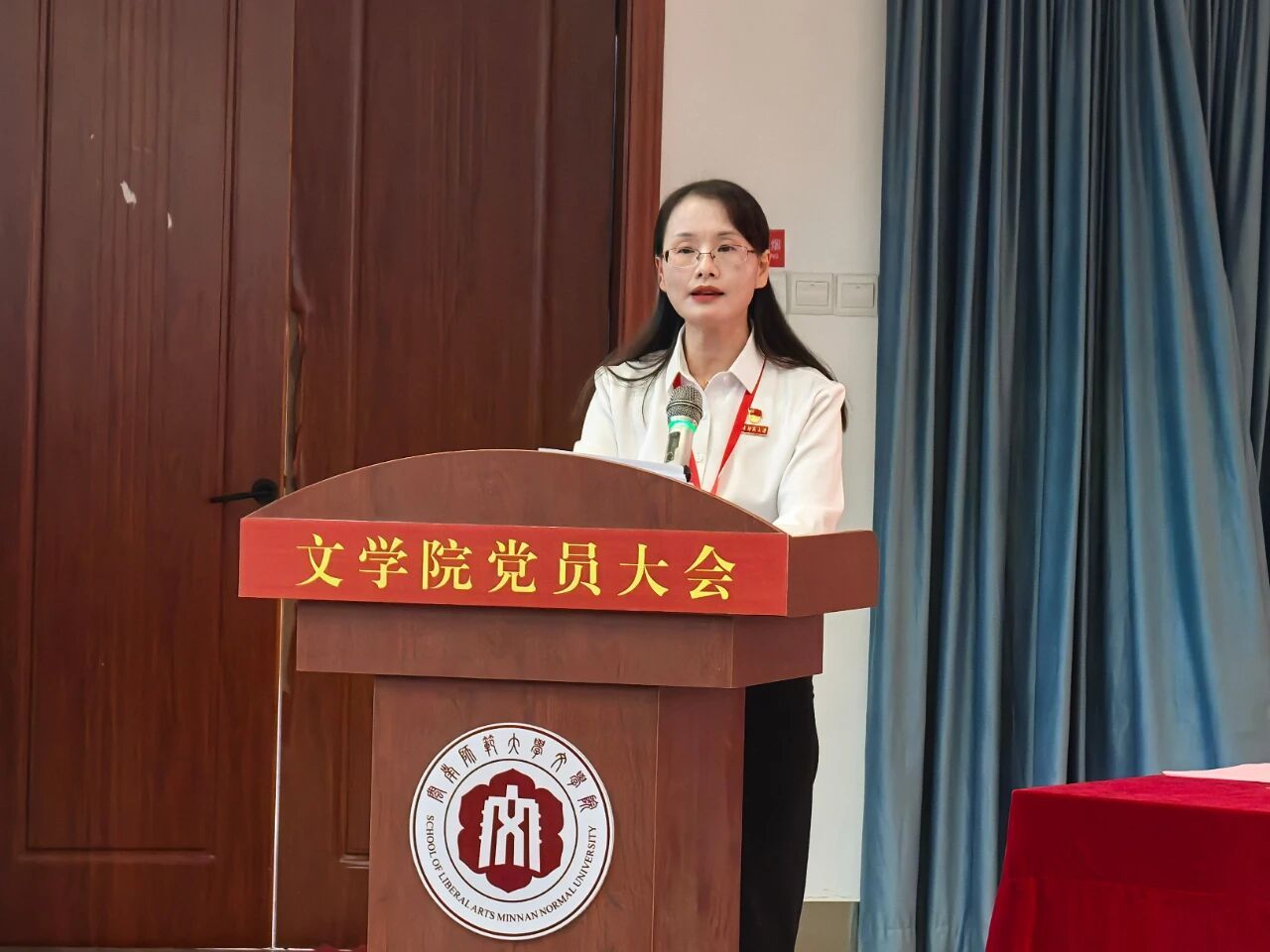 林晓同志代表上一届党委向大会作题为《擎旗奋进担使命,创先争优启新程——以高质量党建引领中文学科内涵式发展》的工作报告,并代表学院上届党委报告党费收缴使用和管理情况。沈晓杰同志代表上一届纪委作题为《淬炼党性铸忠诚 文韵润廉谱新篇》的工作报告。