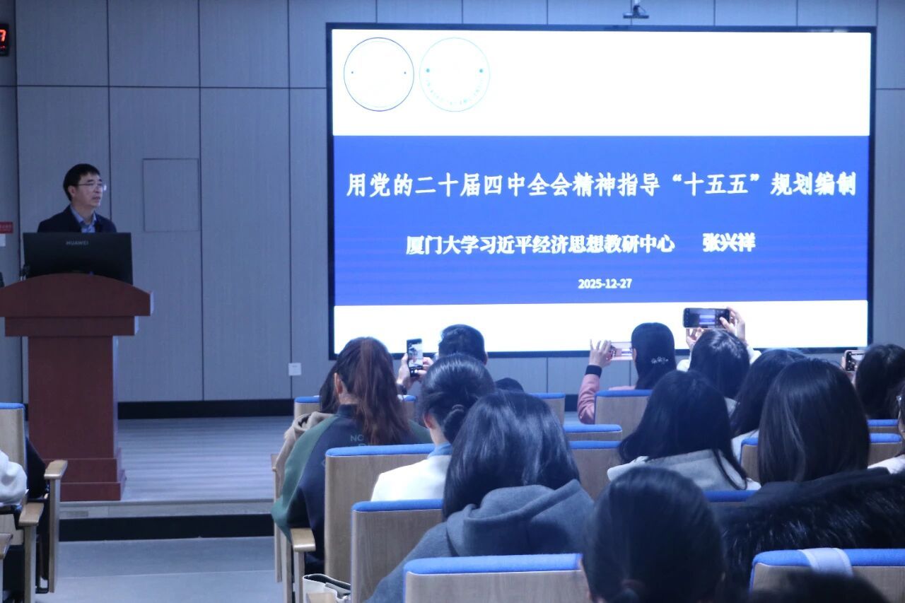 本次培训班邀请厦门大学习近平经济思想教研中心主任、厦门大学经济学院经济学系主任张兴祥教授作题为《用党的二十届四中全会精神指导“十五五”规划编制》的专题党课。