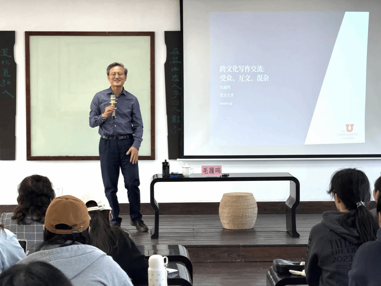 在讲座中,毛履鸣进一步指出,真正的跨文化写作是持续的“适应、适应、再适应”的过程。他特别强调,二元对立思维长期制约深度对话,而跨文化写作呼吁一种多元思维,鼓励在差异中寻求连接,在碰撞中激发创造。他鼓励学生主动学习不同语言,在多文化参照中深化对自身传统的理解,以写作者与对话者的双重身份,参与到人类共同的意义之网中。
